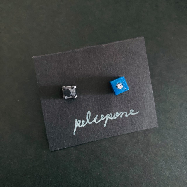 電子パーツにジルコニアをあしらったピアス・:*+.\(( °ω° ))/.:+黒いほうはミニスイッチになっています♡ パーツサイズ:約7×7cm×7cm ピアス部分:サージカルステンレス