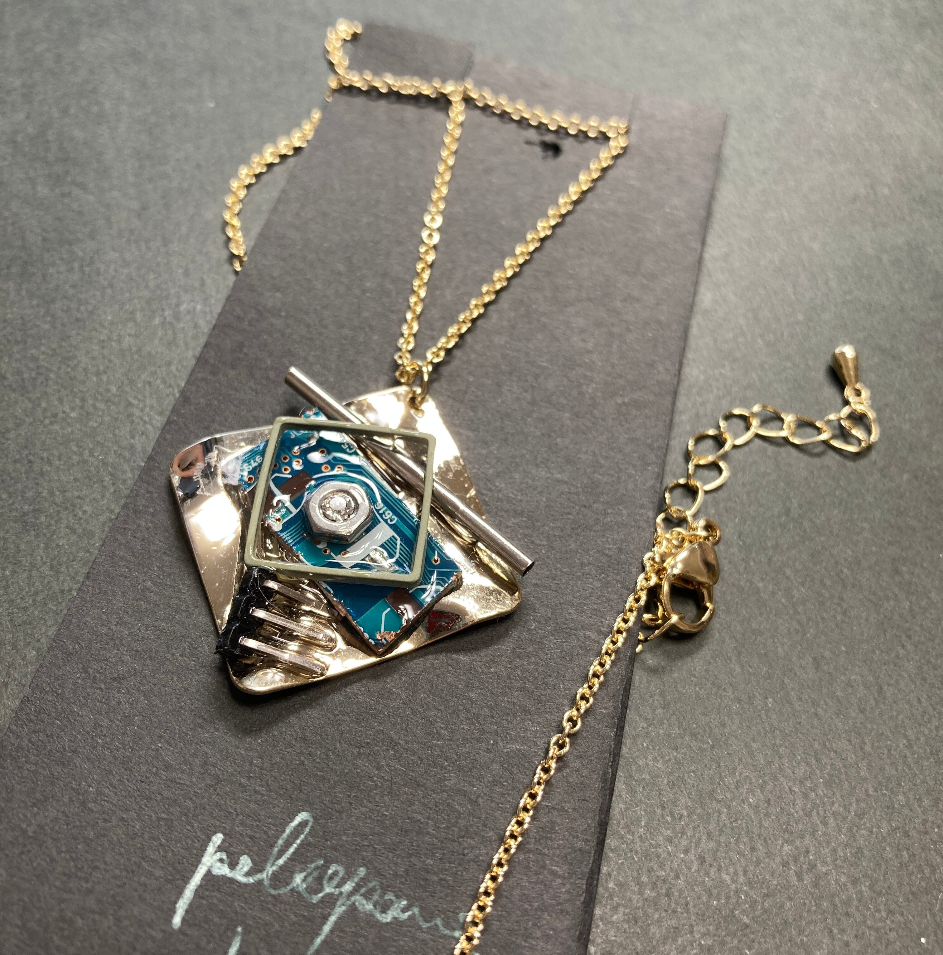 ブルー基板ゴールドネックレス