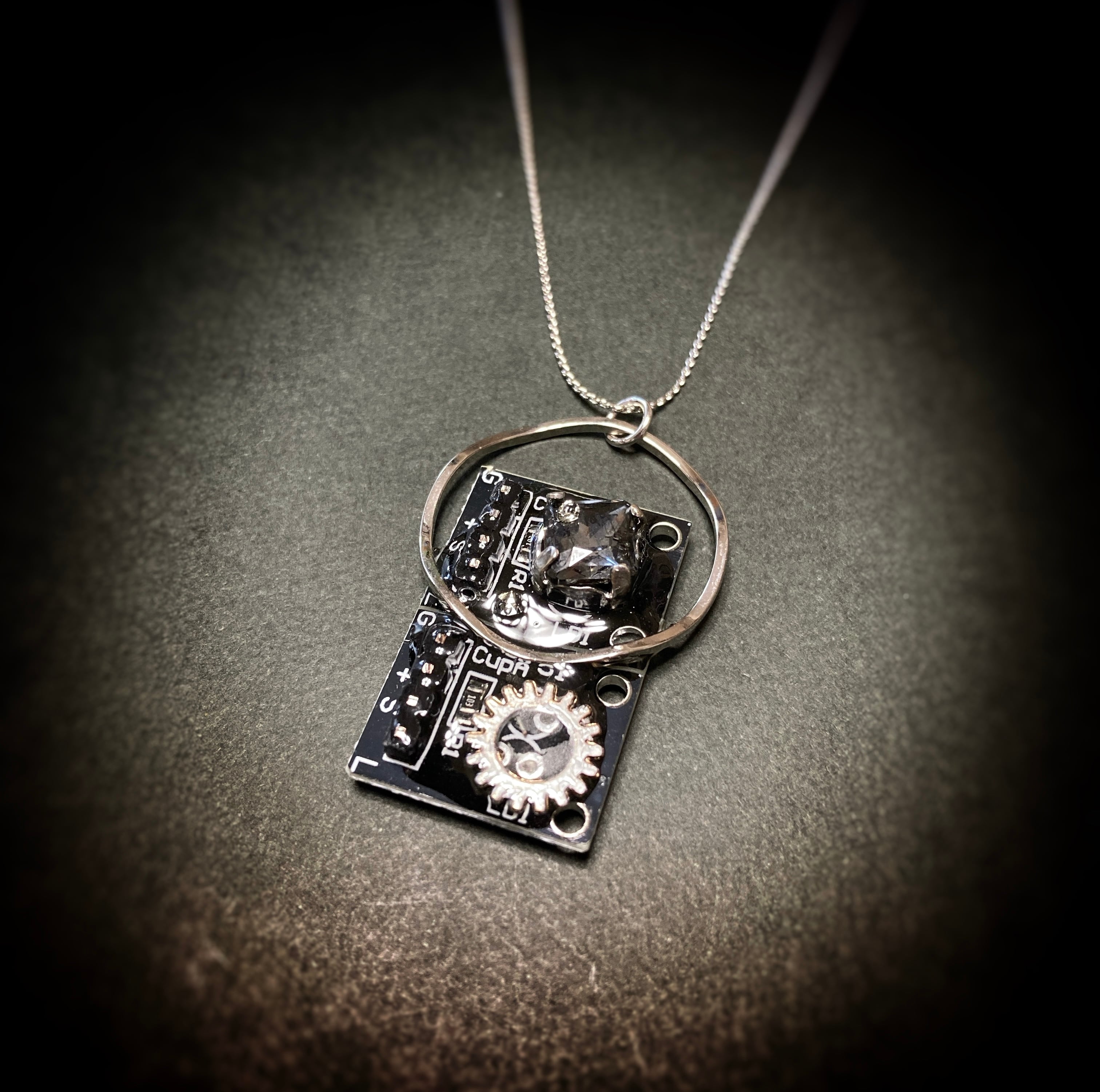 黒い基板に大きめのジルコニアをあしらったデザインネックレス・:*+.\(( °ω° ))/.:+